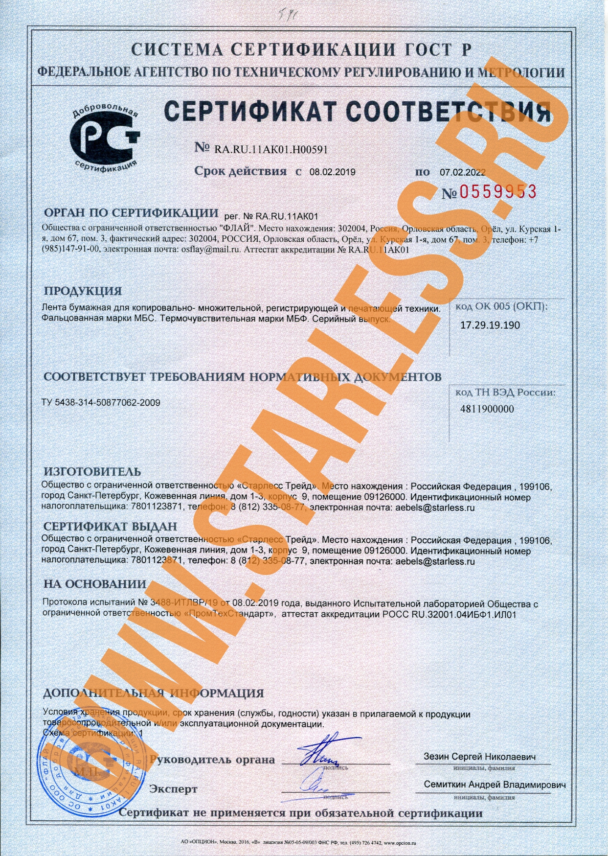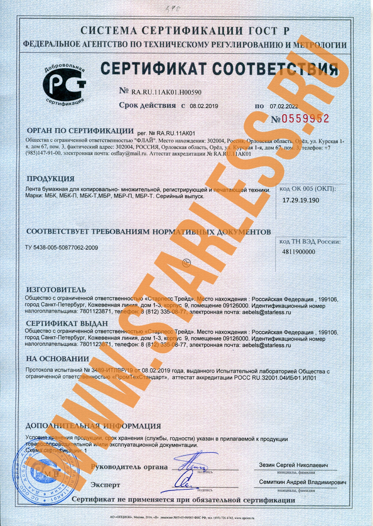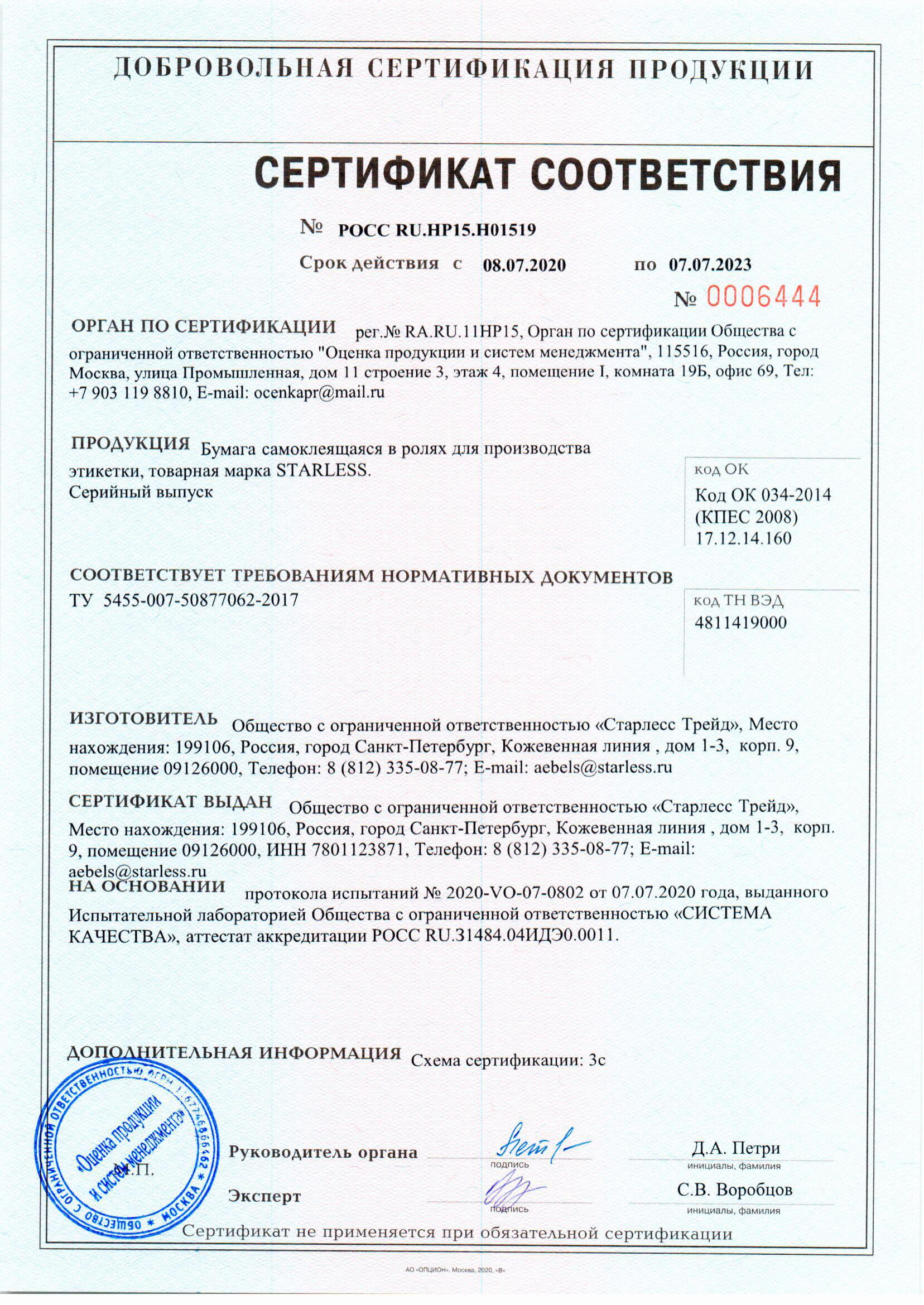Сертификат Бумага самоклеящаяся в ролях STARLESS до 2023_ЭКО ТОП ТТ-1.jpg