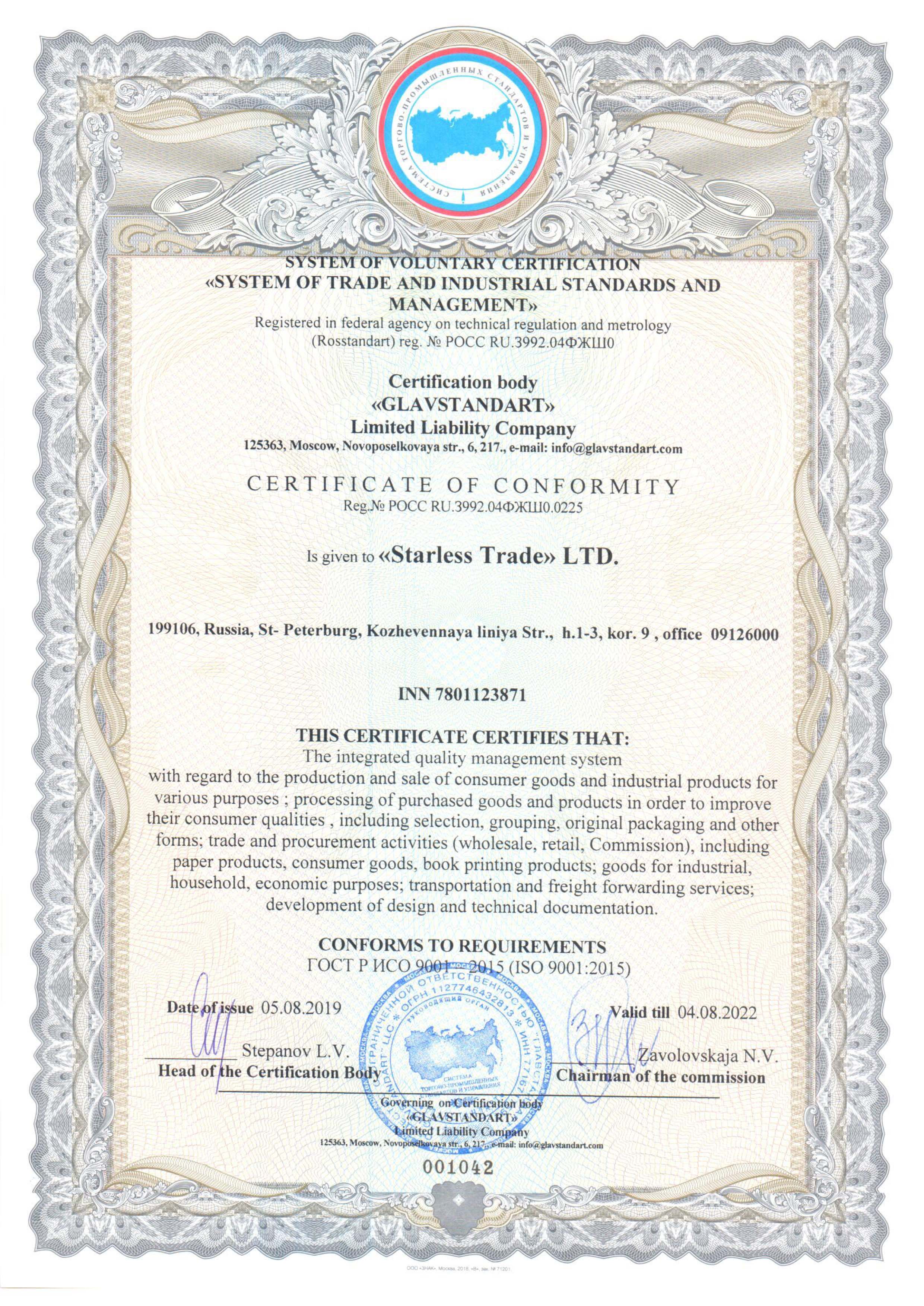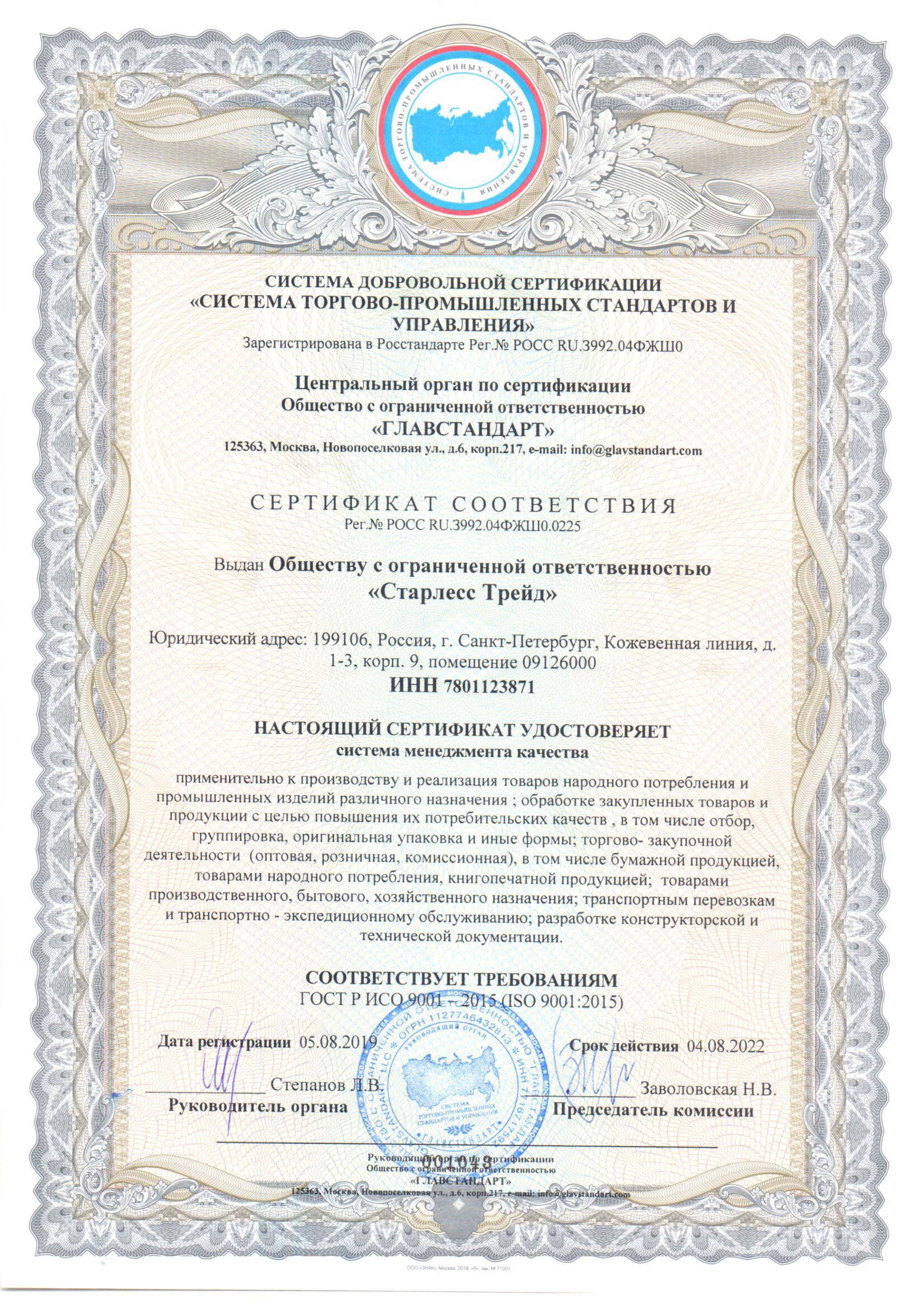 Сертификат ISO 9001-2015 до 04.08.2022