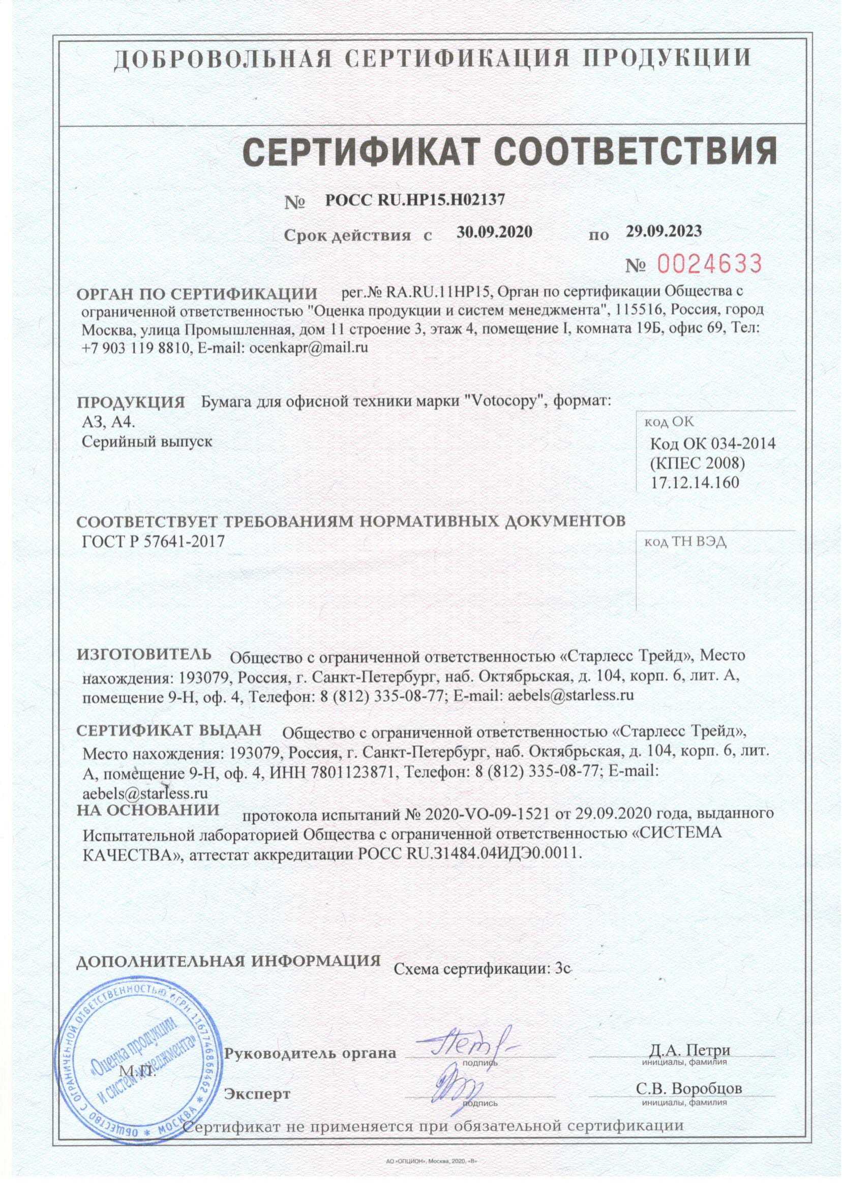 Сертификат Офисная бумага VOTOCOPY до 2023г._-1.jpg