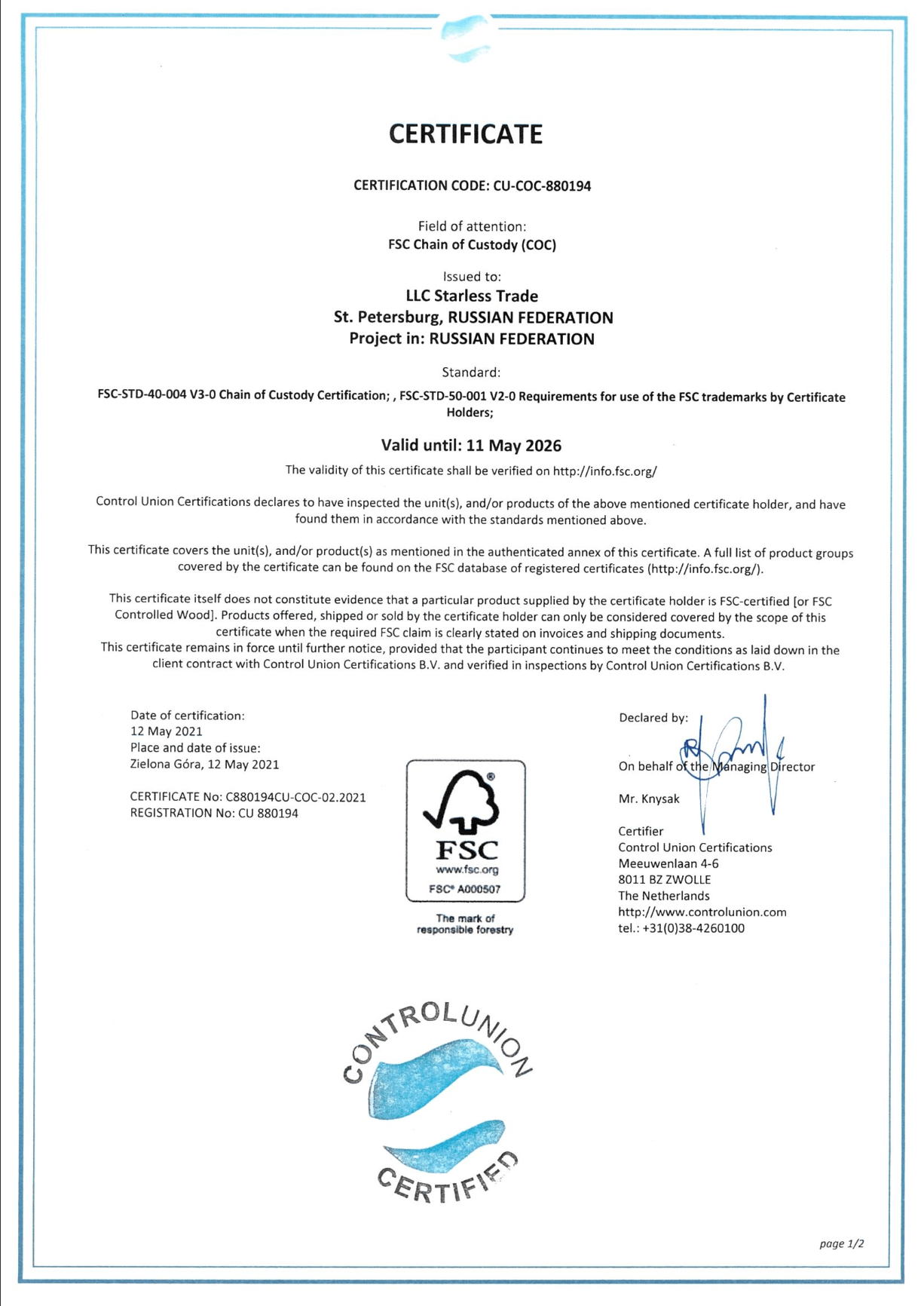 Сертификат FSC 2026 - 01