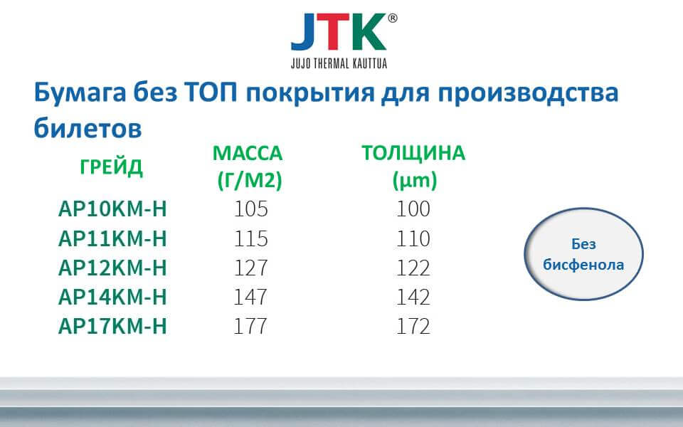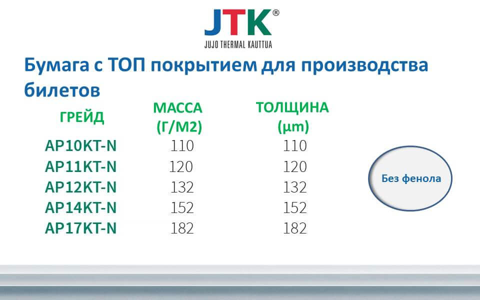 Jujo Thermal (JTK) является самым опытным и одним из крупнейших в мире поставщиков термобумаги длительного срока службы для этикеток, билетов, ярлыков и кассовых аппаратов. Компания была основана в 1992 году и находится в Финляндии, в местности Кауттуа. Владельцем является Nippon Paper Industries – один из крупнейших и опытных в мире производителей бумажных материалов.